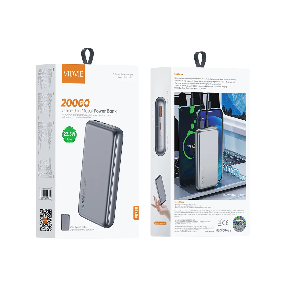 22.5W output, 20 Type-C, only 2.23cm thick, lightweight and portable, All-aluminum alloy ergonomic double sided curvature design, high texture and excellent hand feel
