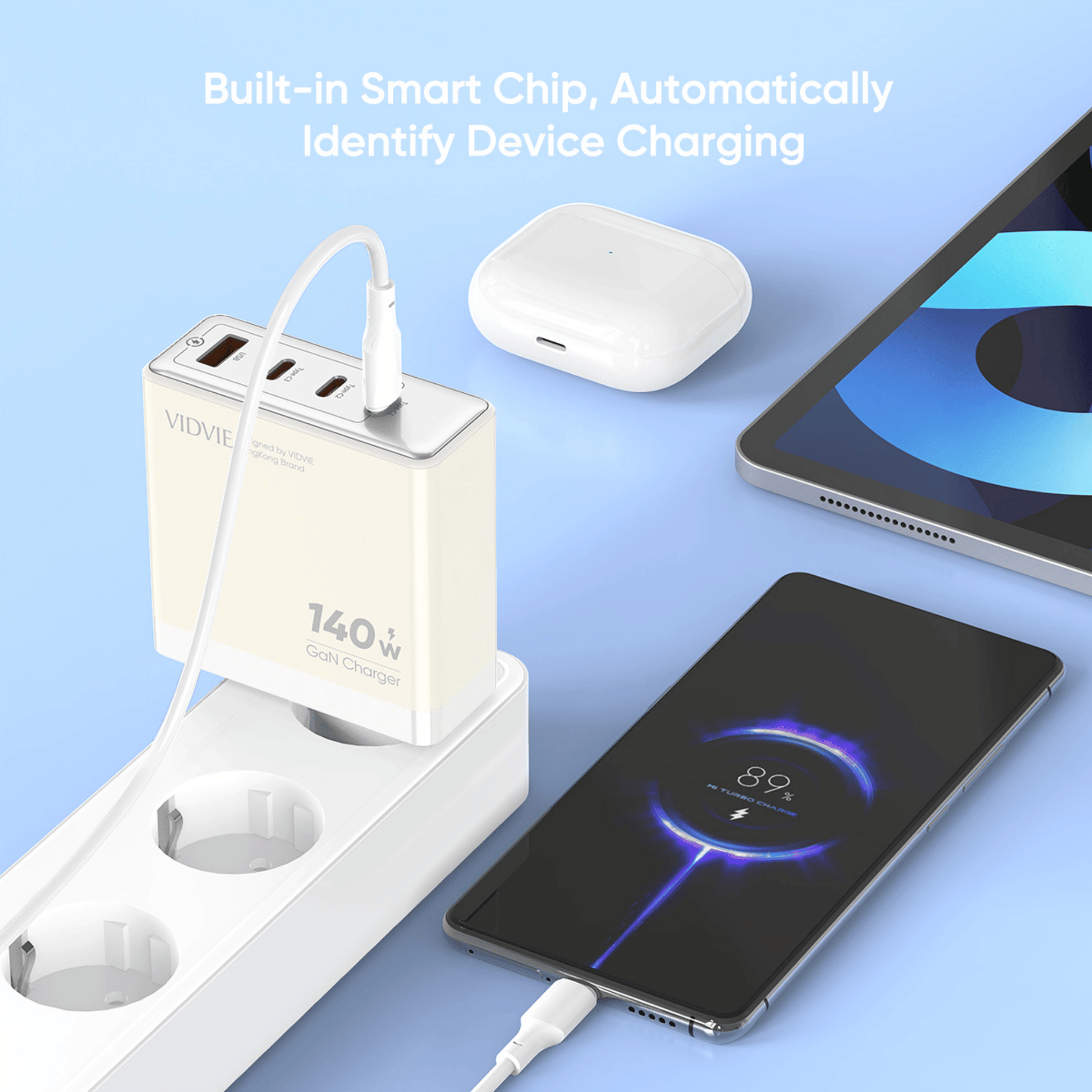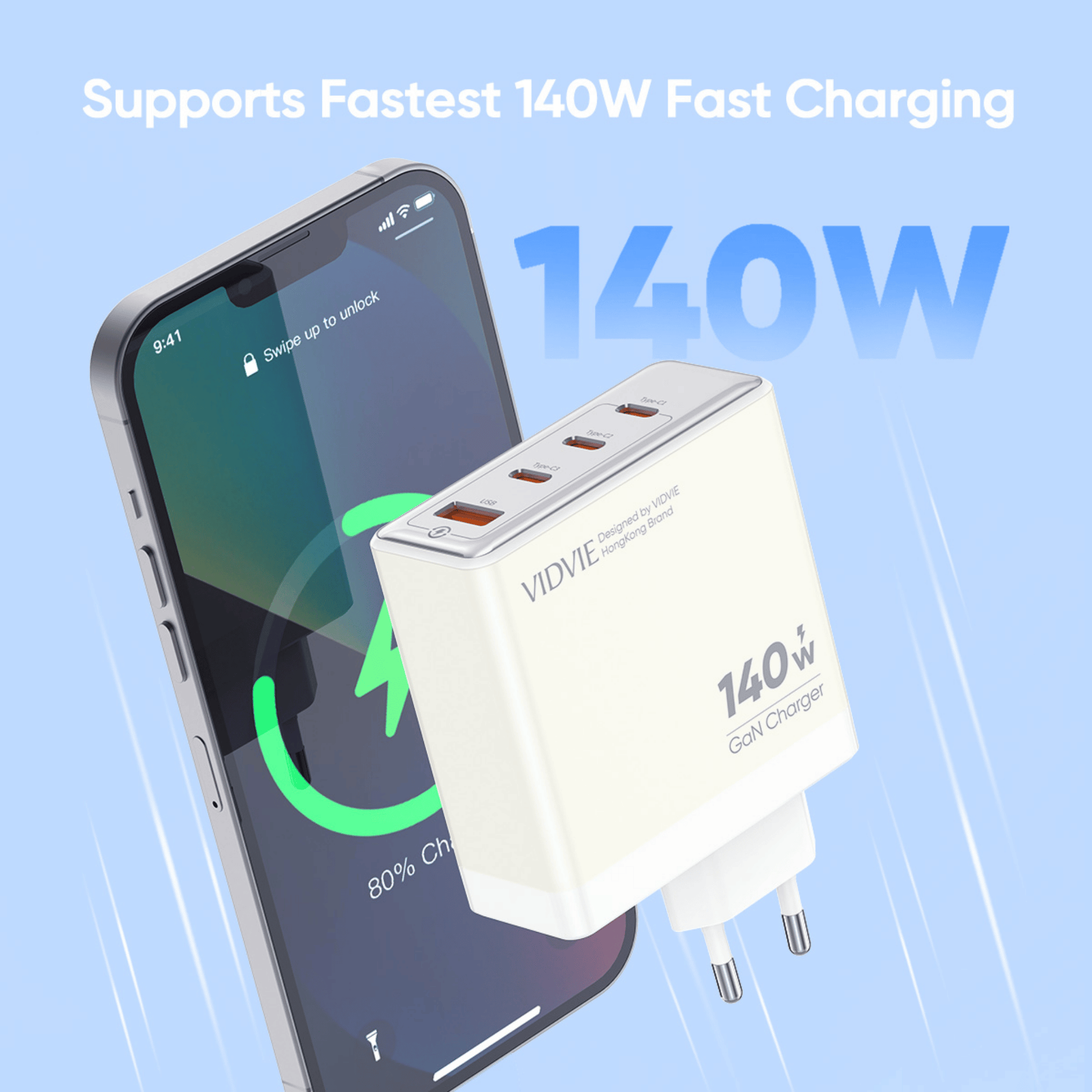 140W High Power Output, Built-in smart chip, Multi-port charging, safe and fast charging does not hurt the battery/devices